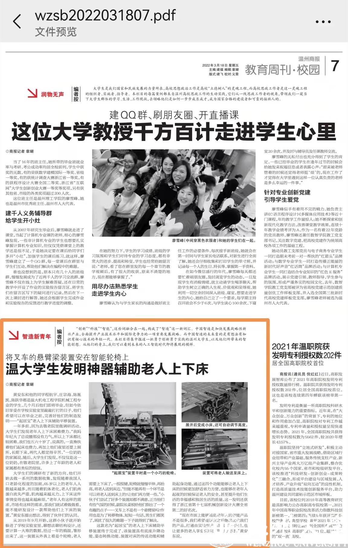 黄安东和他的同学程航宇、庄宗海、陈胤凯、陈跃华都是温大机电工程学院机械工程专业的学生。几个月后他们即将毕业,但如今依旧享受在学校实验室里敲敲打打的日子。他们希望可以在毕业之前,完善好他们的制造发明——“起居宝”老人上下床辅助平移装置。