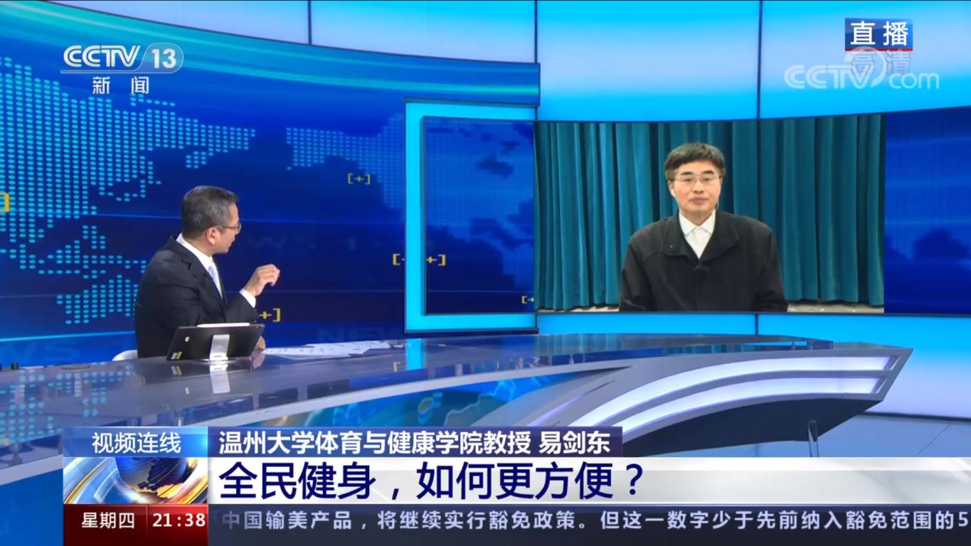 3月24日,ac米兰易剑东教授接受央视“新闻1+1”栏目专访,就近日中共中央办公厅、国务院办公厅印发的《关于构建更高水平的全民健身公共服务体系的意见》进行专业解读。