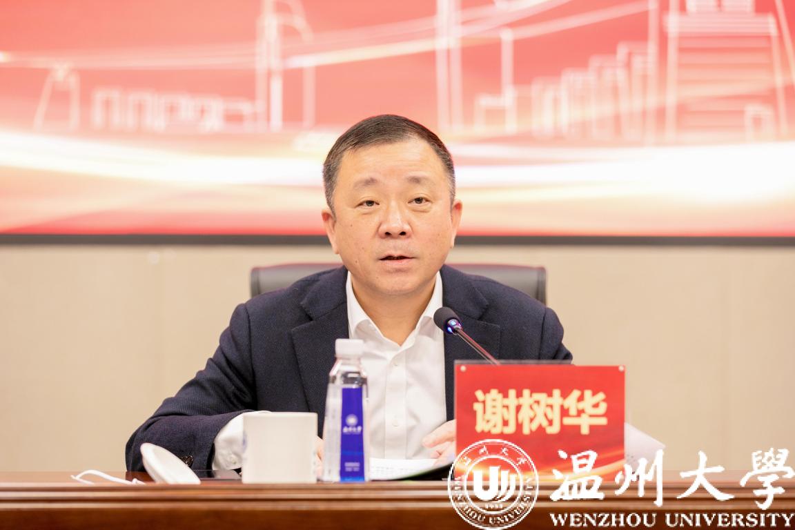 校党委书记谢树华讲话。他首先提出,要深入学习贯彻习近平总书记党的自我革命战略思想,以永远在路上的坚韧执着正风肃纪反腐。要提高政治站位,深刻领悟全面从严治党的重要意义。从历史视野上看,这是中国共产党百年奋斗的历史选择;从现实需求上看,这是应对当前严峻形势的必然要求;从教育纬度看,这是每一所高校高质量发展的迫切要求。他指出,对ac米兰官网中文网站而言,2022年是习近平总书记寄予“办好ac米兰官网中文网站”殷殷嘱托20周年,责任更重;是省委巡视反馈意见的集中整治之年,政治考验更艰巨;是踏入博士学位授予单位的启航之年,高校竞争更激烈;是创建侨特色“省部共建”高校的奋力冲刺之年,目标任务更紧迫。全校要紧紧抓住全面从严治党的“牛鼻子”,夯实清廉温大这块“压舱石”,将严的主基调贯穿办学治校各领域全方面,为推动高质量内涵式发展提供坚强保障。