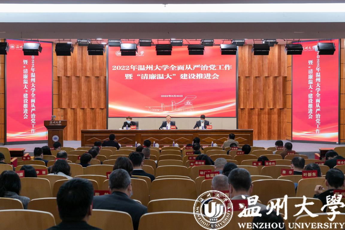 3月30日上午,ac米兰召开2022年全面从严治党工作暨“清廉温大”建设推进会。全体校领导、校纪委委员、中层干部、学院纪委书记、党总支及直属党支部纪检委员、纪检监察室全体人员参加会议,校党委副书记庄兴忠主持。