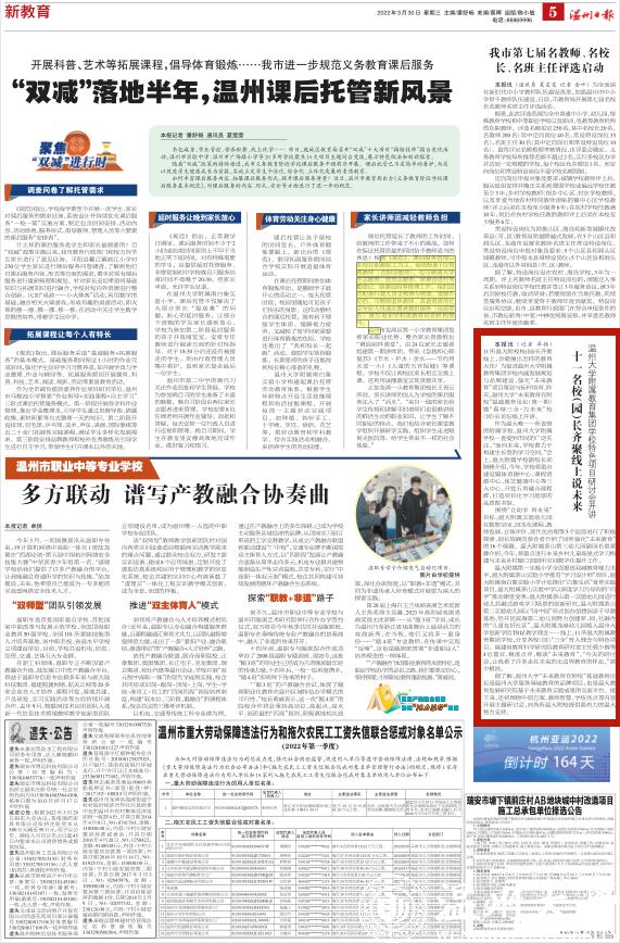 作为温大唯一一所直管的附属学校,ac米兰官网中文网站附属学校一直受到市民的广泛关注。“面向未来,学校着力于构建生长型的学习空间。”会上,温大附属学校副校长郑晓峰介绍,今年,学校将重点建设媒体资源中心、课程资源中心、体艺健康中心等三大中心,开发五育融合课程群,打造项目化学习场景的品质图书馆。