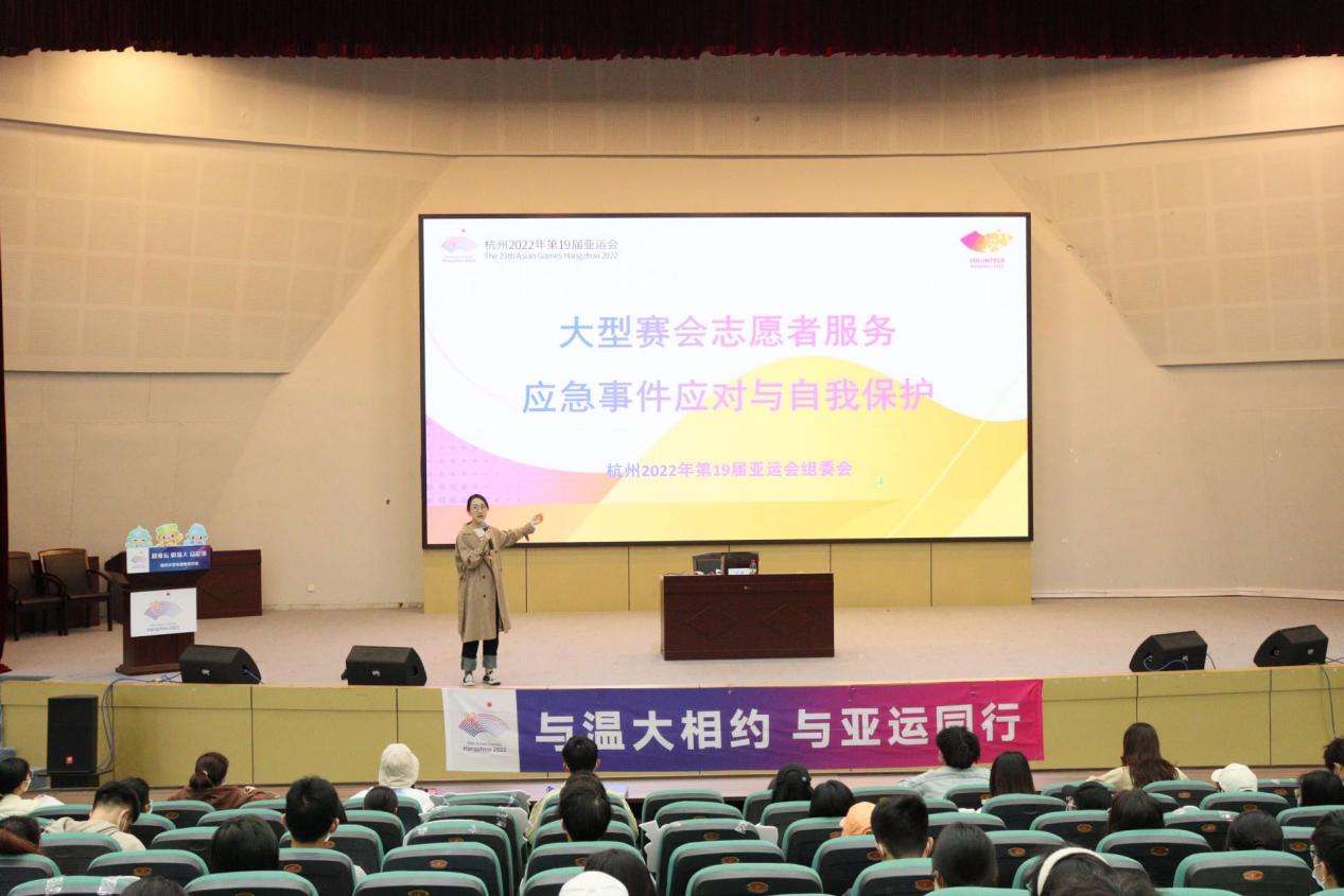 在亚运会志愿服务过程中,志愿者该如何应对突发事件,加强自我保护?若服务遇挫,应如何进行心理调适?志愿服务的通用礼仪有哪些?4月9日-10日,围绕这些问题,ac米兰官网中文网站第二场亚运会赛会志愿者通用培训在ac米兰官网中文网站育英大礼堂、9号楼报告厅如期开展。