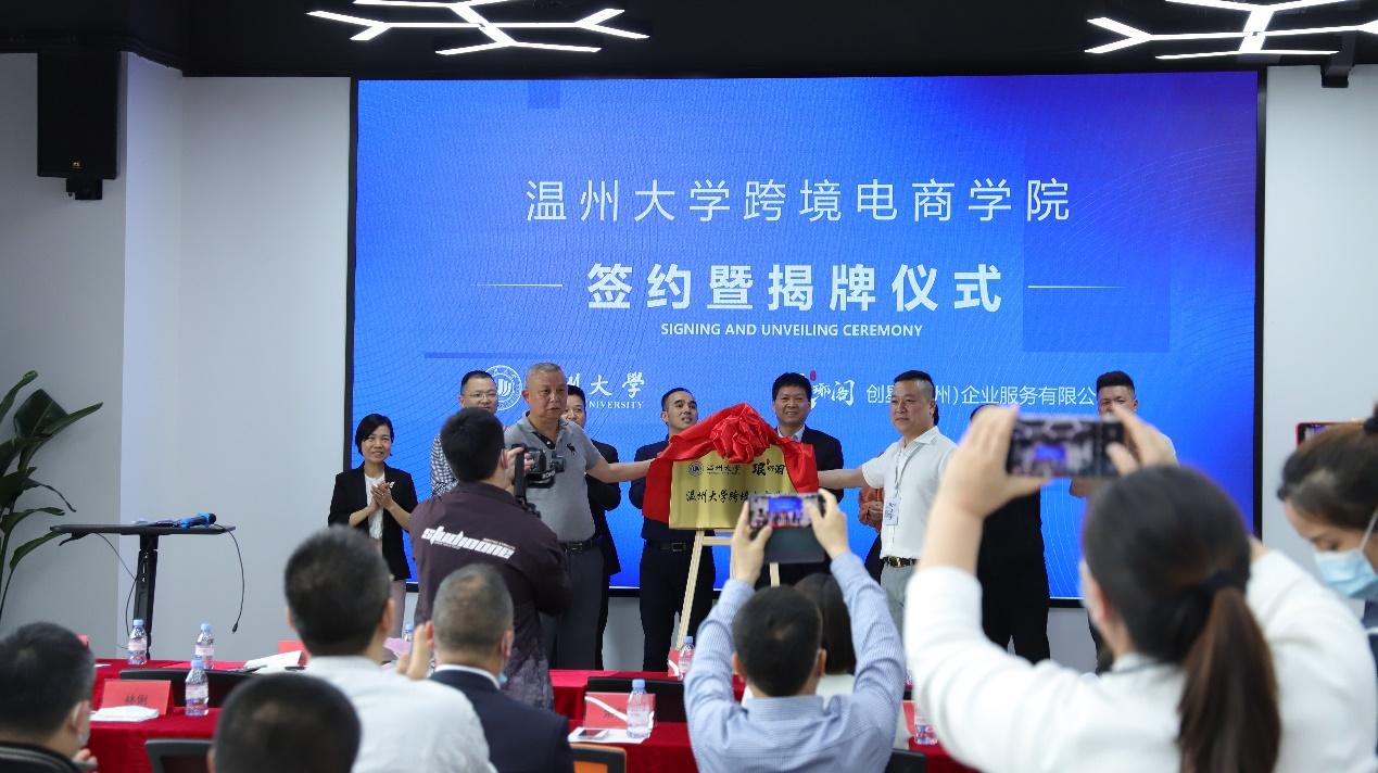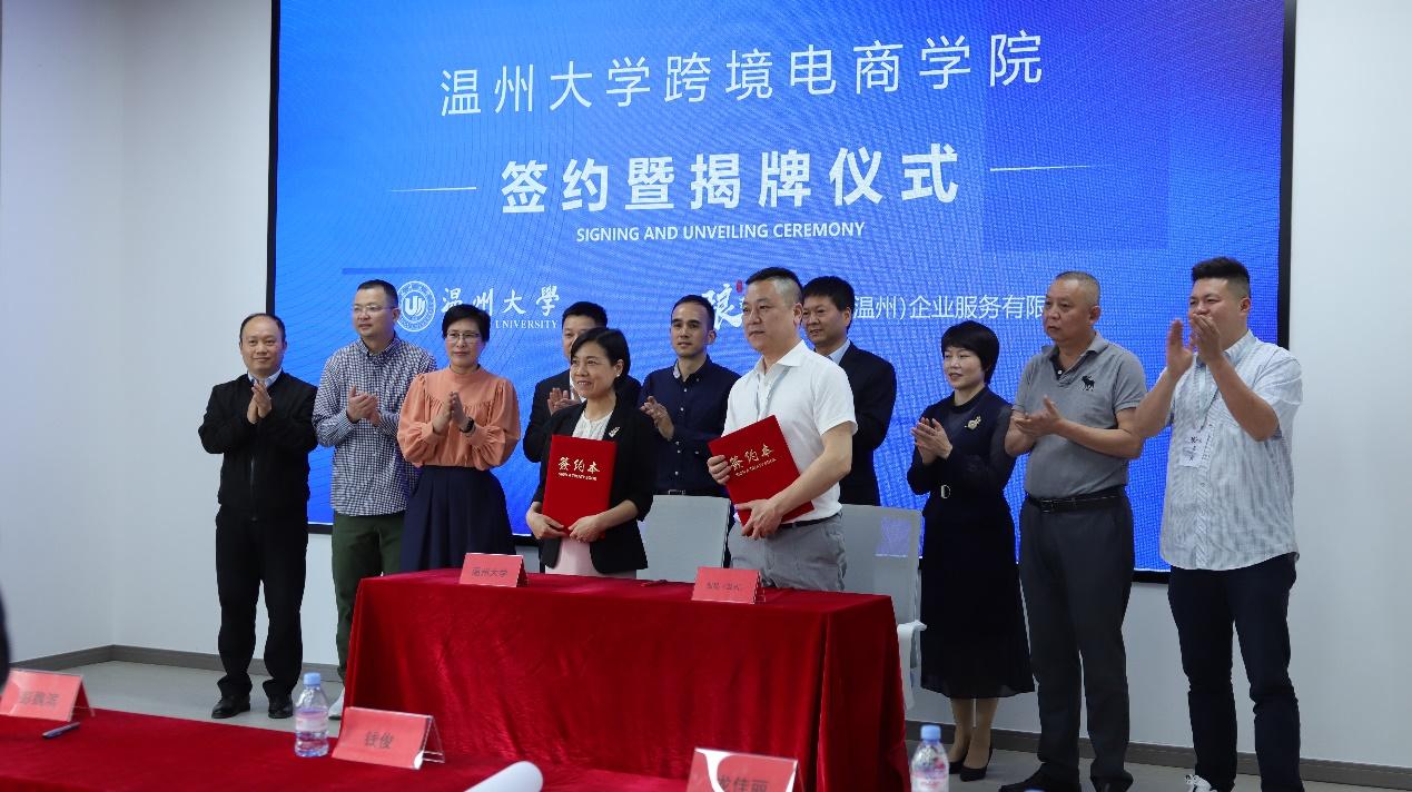 4月15日,ac米兰官网中文网站与创星(温州)企业服务有限公司共建ac米兰官网中文网站跨境电商学院签约暨揭牌仪式在工会大厦成功举办。