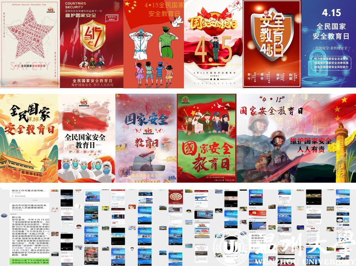 全校各学院、各部门围绕总体国家安全观和国家安全各领域,充分利用线上线下资源加大相关知识和活动的宣传推动力度,广泛开展“千万师生同上一堂国家安全教育课”“国开大讲堂•国家安全教育公开课”等专题讲座、教学观摩、知识竞赛、图文展播、主题班会、社团分享、党团日主题教育活动,引导师生掌握和丰富自身国家安全相关知识和技能;通过“两微一端”等平台积极转发权威部门、主流媒体相关宣传内容,在校园官方网站、校内大屏、闭路电视、宣传栏等推送展播国家安全法、反分裂国家法、国防法、反恐怖主义法、数据安全法、生物安全法、网络安全法、保密法等国家安全相关法律和主题教育课件,营造浓厚氛围助力师生随时随地开展学习;积极组织师生通过中国大学生在线、腾讯平台“守护青春•感悟新时代国家安全成就”全民国家安全教育日线上视频号参与话题接力,通过微博、微信、快手、抖音、B站等平台参加国家安全话题互动,激发师生主动学习和参与意识;组织师生通过海报设计、微宣讲、微视频和趣味游戏等方式开展内容丰富、形式多样的国家安全宣传教育活动,切实增强教育活动的吸引力和参与度,筑牢师生维护国家安全的思想意识防线和知识技能根基。