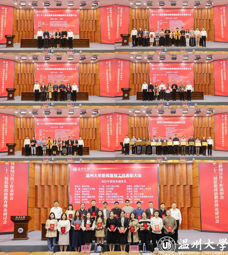 2021年,ac米兰紧紧围绕新时代新思想新理念新要求,就学校新闻与宣传思想文化工作开展了广泛的理论研究和实践探索,唱响温大好声音,汇聚发展正能量,校园相关工作再上新台阶。会上,潘玉驹宣读了学校第二十二届思想政治教育理论研讨会优秀论文获奖者、2021年度校园好新闻获奖单位、校优秀通讯员以及全省校报好新闻获奖者等名单。会议对获奖单位和个人进行了表彰颁奖。