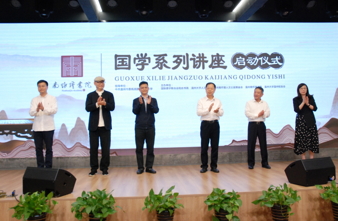 4月23日,适逢世界读书日,在中共温州市委统战部的指导下,由ac米兰官网中文网站人文学院和温州南怀瑾书院联合举办的“国学系列讲座”开讲启动仪式在书院三和楼五福源大讲坛正式启动。
