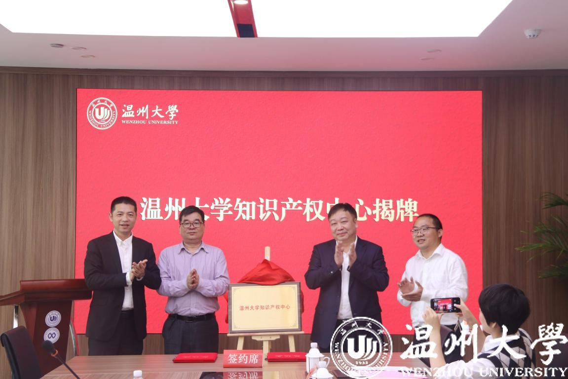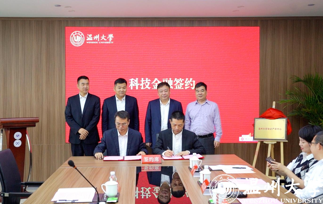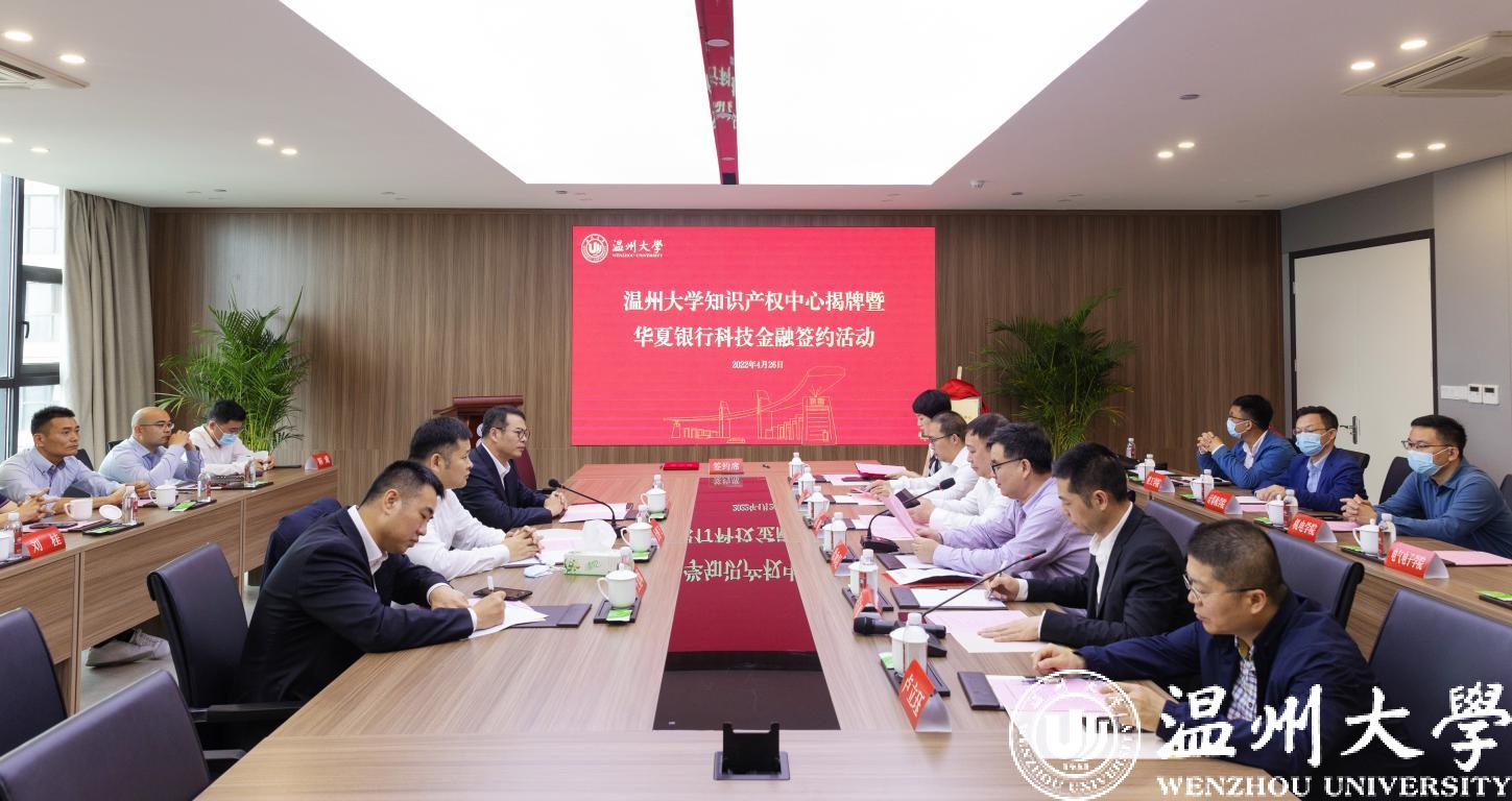 ac米兰官网中文网站资产经营有限公司、科技处负责人共同为知识产权中心揭牌,并与华夏银行温州分行行长金鹏飞签订科技金融授信协议。