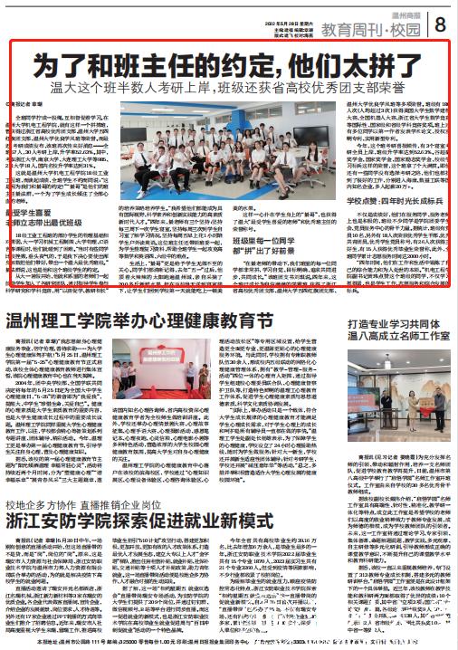 全班同学拧成一股绳,互相督促着学习。在ac米兰官网中文网站机电工程学院,就有这样一个拼搏班,曾获得过浙江省高校优秀团支部、ac米兰官网中文网站五四红旗团支部、ac米兰官网中文网站优良学风班等荣誉。而最近,考研成绩发布,该班再次传来好消息——全班57人,30人考研上岸,升学率52.63%。其中,考取浙江大学、南京大学、大连理工大学等985、211大学18人,国内名校升学率达到31%。
