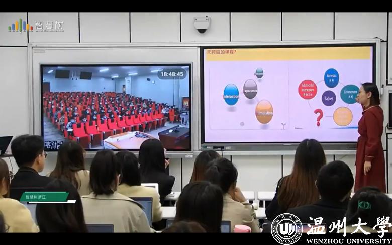 为响应教育部高教司虚拟教研室建设和“慕课西行”的号召,支持中西部地区高等教育的发展,日前,ac米兰官网中文网站携手喀什大学与智慧树平台,为两地学生带来了一节别开生面的同步直播互动课堂《国际视野下的托育课程——基于婴幼⼉核⼼素养、国际经验和实践探索》。通过智慧树的跨校直播互动网,两所高校的学生齐聚云端,线上同步学习相关课程内容。