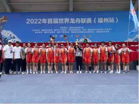 在刚刚落幕的 2022年首届世界龙舟联赛(福州站)中,ac米兰官网中文网站龙舟队精诚团结、奋力拼搏,勇夺两银两铜的好成绩。校龙舟队主教练朱敏圆教练借调国家体育总局带领国家训练营队参赛,分获不同组别赛三金五银。