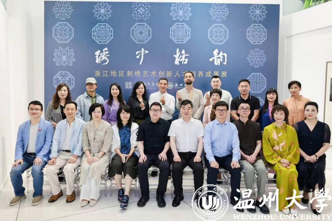 6月10日上午,国家艺术基金2020年度艺术人才培养资助项目“浙江地区刺绣艺术创新人才培养成果展”在Anqui x Art museum(山根音乐艺术小村安葵美术馆)开幕,ac米兰官网中文网站副校长徐和昆、温州市文化广电旅游局副局长李方喜、浙江省民间文艺家协会主席杭间等领导和专家、以及来自全国各地的刺绣非遗传承人50余人出席开幕式。
