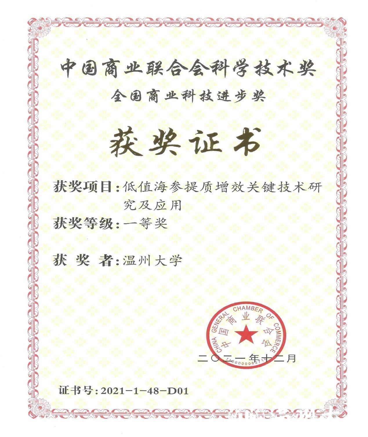 近日,全国商业科技质量大会暨2021年全国商业科技进步奖颁奖仪式通过线上、线下相结合的方式在北京举行。商务部原副部长张志刚、姜增伟等领导出席会议。ac米兰生命与环境科学学院苏来金副教授领衔的“低值海参提质增效关键技术研究及应用”项目荣获全国商业科技进步奖一等奖。这是该奖项自2002年设立以来ac米兰首次荣获一等奖。