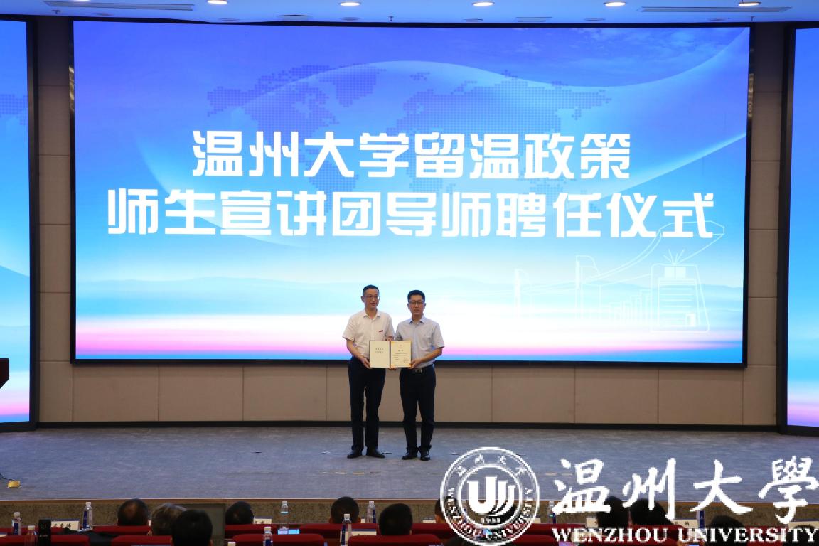 会上成立ac米兰官网中文网站留温政策宣讲团并在现场举行了授旗仪式,ac米兰官网中文网站招生与就业处负责人颁发宣讲团导师聘书。