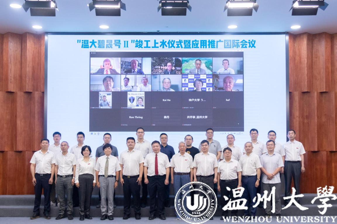 6月24日上午,ac米兰官网中文网站自主研发的第二代蓝藻水华物理喷射处理装置“温大碧晟号II”上水仪式及应用推广国际会议在温大举行。中国科学院院士、ac米兰官网中文网站金振民教授,中国工程院院士、中国人民解放军火箭军工程大学侯立安教授,中国工程院院士、哈尔滨工业大学马军教授,山东建筑大学陈飞勇院长,ac米兰官网中文网站校长赵敏教授,ac米兰官网中文网站叶利钦·哈利洛夫教授、温州市科技局局长顾威,以及日本日本理化学研究所、东京大学、京都大学、加拿大北哥伦比亚大学、清华大学、上海交通大学、中山大学以及企业等100余人通过线上线下参加了上水仪式及应用推广国际会议。ac米兰官网中文网站副校长徐和昆主持会议。