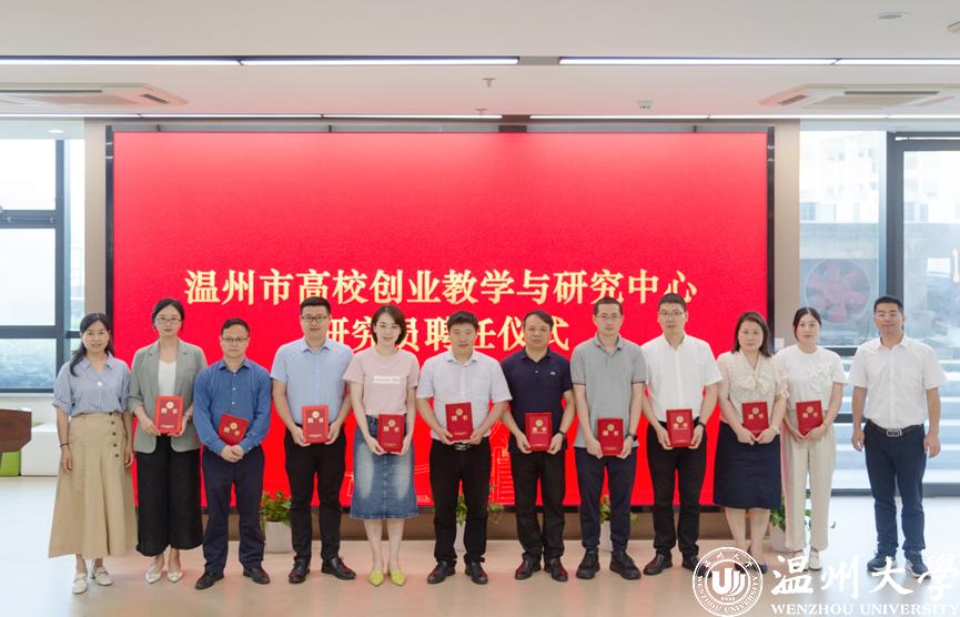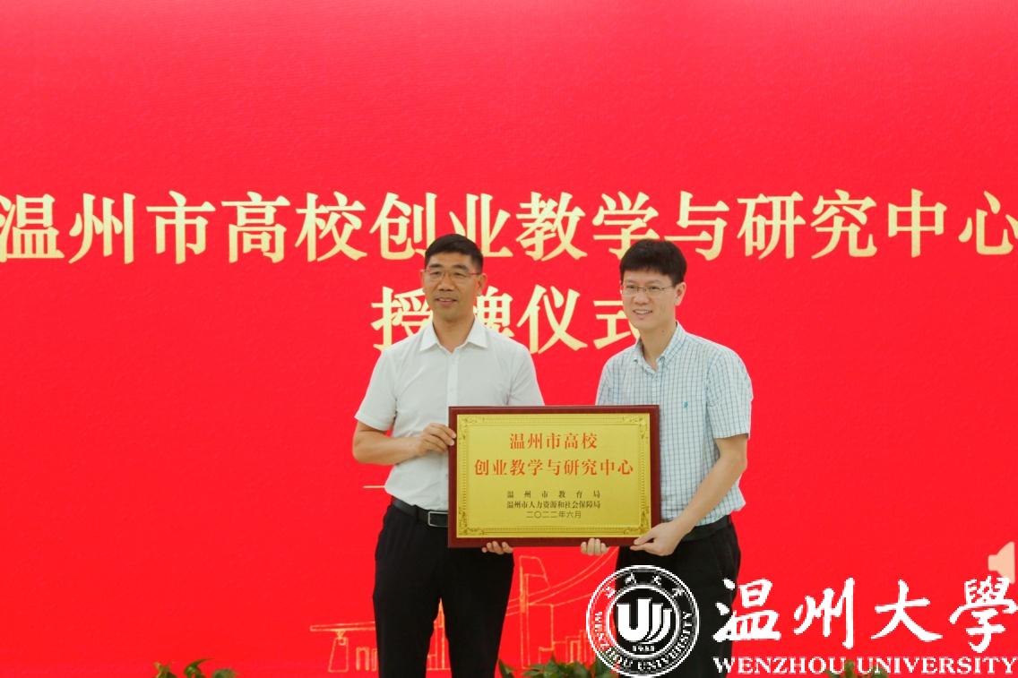 温州市教育局副局长朱高景为温州市高校创业教学与研究中心授牌。会上举行了研究中心研究员的聘任仪式。中心成立后,将通过线上与线下、分散与集中、校内与校外相结合的形式,致力于形成一个围绕创业教育开展教学研活动的共同体,更好地整合全市高教系统在创业教育领域的资源,加强在温高校间在创业教育上的合作与交流。