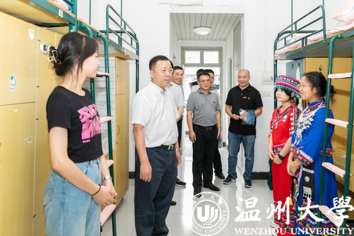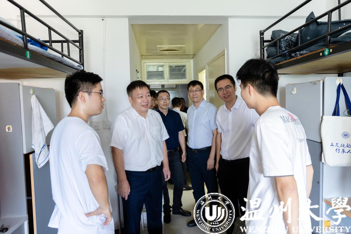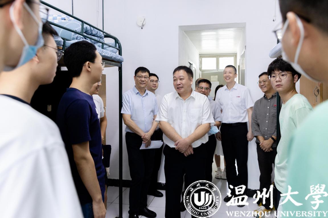 9月6日,ac米兰官网中文网站2022级新生来校报到。校党委书记谢树华、校长赵敏、校党委副书记庄兴忠等深入新生报到点和宿舍走访慰问,为新生送去温大的关怀与温暖。
