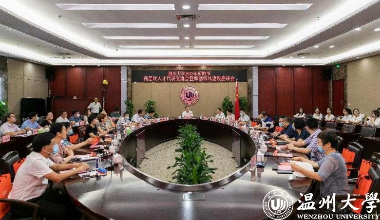 与会教师代表座谈交流教书育人和师德师风建设优秀经验。“百千万人才工程”国家级人选、“国家有突出贡献中青年专家”、马克思主义学院的王习明老师围绕“珍惜、珍重、珍爱”三个关键词,分享了其从教四十年来“坚守教育初心,与学生同进步”的教书育人感悟。温州市优秀共产党员、先进教育工作者、人文学院的刘建国老师结合其教育教学经历,认为教师应始终做到“心中有学生”,坚持“把学生当成亲人、家人是其从教一生不变的信念”。温州市优秀教师、第六届“华峰品德奖”获得者、化材学院的陈迪妹老师从课堂教学和课外实践两方面分享了教育教学经验,并指出培养学生应多层次、多方面促进其全面发展。