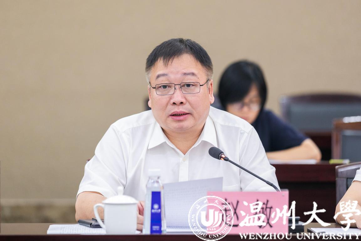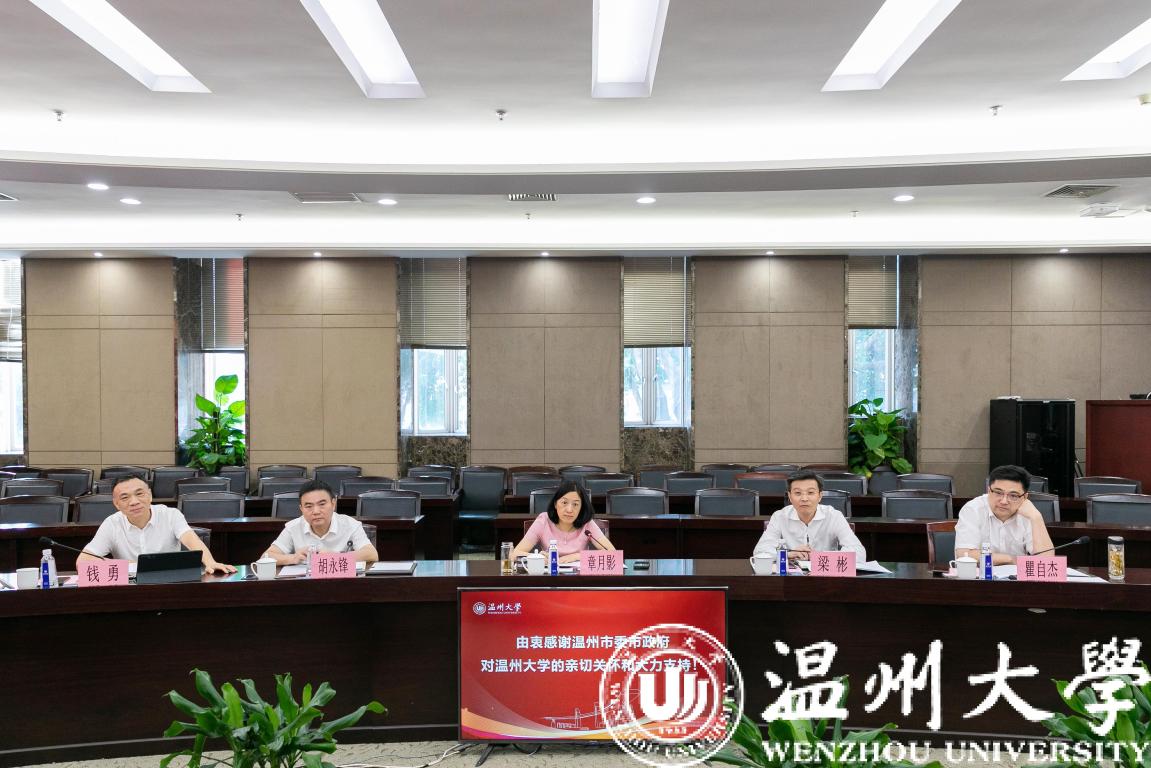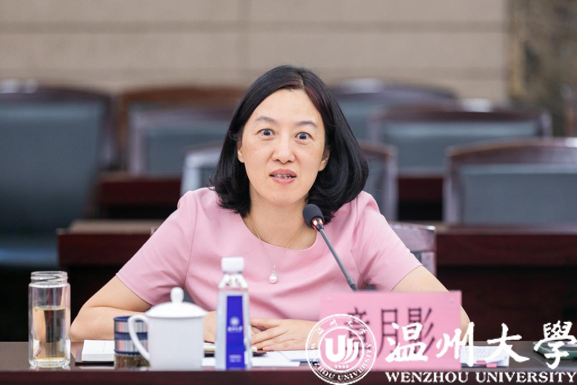 9月15日下午,温州市副市长章月影一行来校就人才与师资建设情况调研指导工作。温州市委组织部副部长、市委老干部局局长胡永锋,市委组织部副部长、市人力资源和社会保障局党组书记、局长瞿自杰,市人民政府副秘书长梁彬陪同调研。校党委书记谢树华,校长赵敏,党委副书记吴金法,副校长王舜,党委委员、组织部部长郑信军出席座谈会。