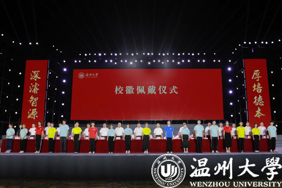校领导为新生代表佩戴ac米兰官网中文网站校徽。一枚小小的校徽承载着学校89载历史底蕴和厚重情怀。从这一刻起,“温大人”成为2022级新同学一生的印记。新“温大人”肩上担起了温大责任,心中延续着温大精神,走上了与校共荣的道路。