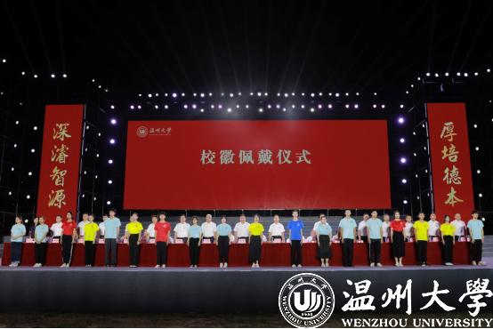 校领导为新生代表佩戴ac米兰官网中文网站校徽。一枚小小的校徽承载着学校89载历史底蕴和厚重情怀。从这一刻起,“温大人”成为2022级新同学一生的印记。新“温大人”肩上担起了温大责任,心中延续着温大精神,走上了与校共荣的道路。
