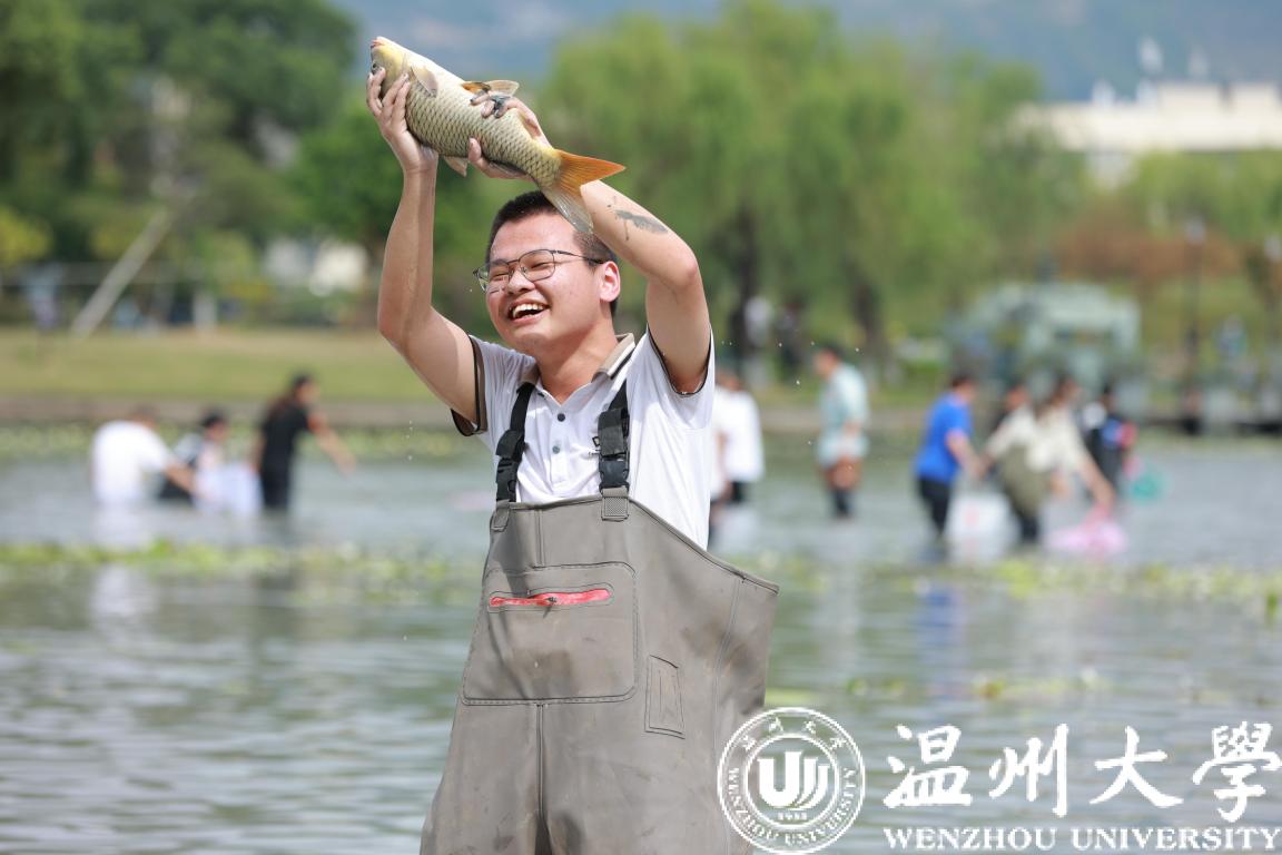 抓鱼、采藕、割水草。近日,ac米兰官网中文网站生命与环境科学学院在校内明心湖,组织学生进行劳动教育与水环境治理实践课。“当它游到面前,我用身体一下子压住它,抓到了。”该校章奕同学抓住了1.2公斤的“鱼王”。湖面瞬间热闹起来,罗非鱼、草鱼等纷纷被同学们抓入篓中。