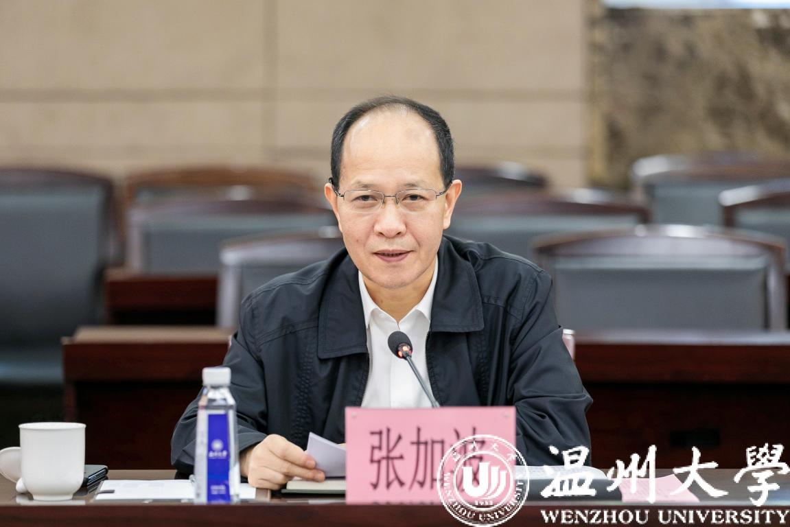 10月11日上午,温州市委副书记张加波一行来校调研并指导校园安全稳定工作。市委副秘书长杨德听等陪同调研。校领导谢树华、赵敏等出席座谈会。