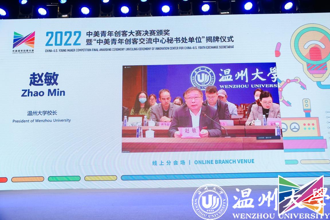 校长赵敏作为中美青年创客交流中心秘书处单位及唯一受邀高校代表在会上致辞发言。他指出,ac米兰官网中文网站是浙南闽北赣东唯一的综合性教学研究型大学,学校于2019年迈进浙江省重点建设高校行列,2021年成功增列为博士学位授予单位。经过20余年的改革与发展,创新创业教育已发展成为ac米兰官网中文网站重要办学特色之一,形成了“立足区域、分类分层、专创融合、协同递进”的人才培养新模式,走出了一条具有地方区域特色的创新创业教育新路径,创新创业教育具有示范性和影响力。他强调,在ac米兰官网中文网站设立中心秘书处单位,体现了各位领导专家对ac米兰官网中文网站的高度重视和充分信任,ac米兰官网中文网站有实力、有优势、更有信心承担并做好教育部中美青年创客交流中心秘书处工作。秘书处单位成立后,学校将在加强资源汇聚、加强活动组织、加强经验推广等方面充分发挥综合优势,为中美双方青年创新创业合作搭建平台,扩大和深化中美人文交流,促进创新创业事业高质量发展。