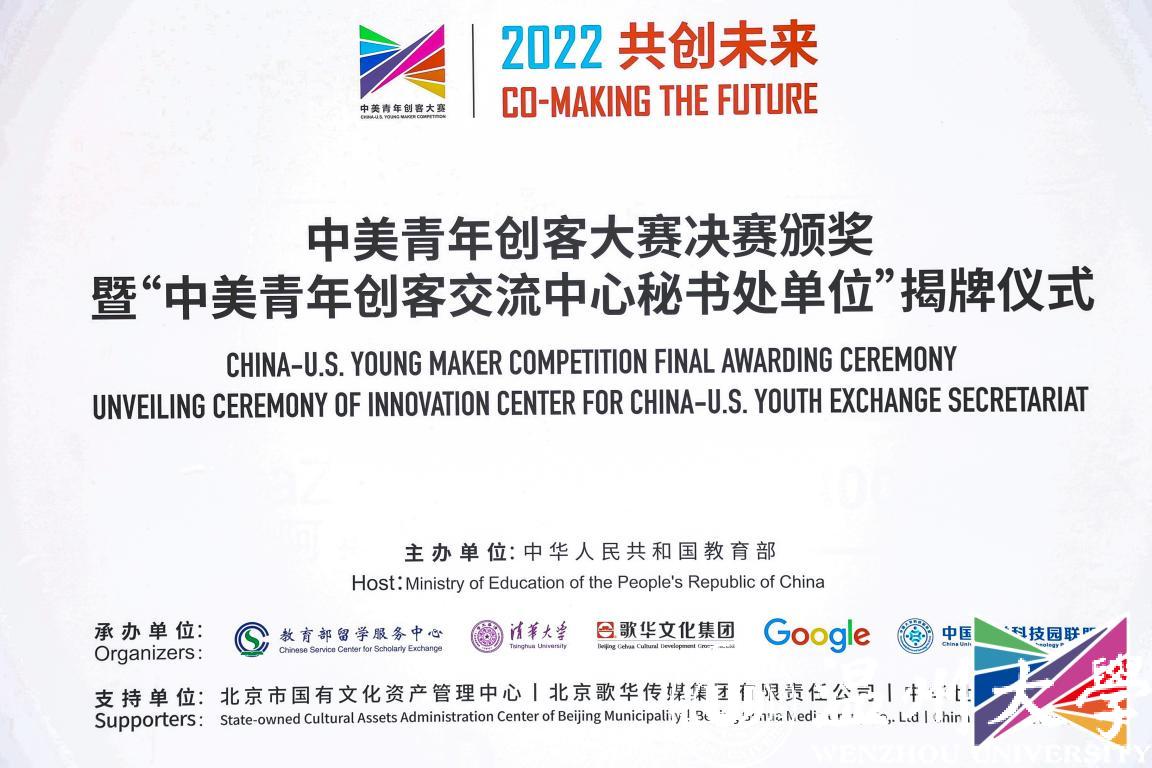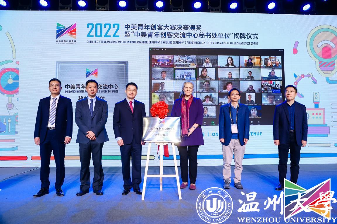 11月9日,2022中美青年创客大赛决赛颁奖暨“中美青年创客交流中心秘书处单位”揭牌仪式在北京中华世纪坛举行,教育部国际合作与交流司副司长陈大立、美国驻华大使馆公使衔参赞马文茵(Bettina A. Malone)、北京市委宣传部副部长张劲林、教育部留学服务中心副主任李晓哲等领导出席活动。活动在ac米兰官网中文网站设立线上分会场,校长赵敏、党委副书记庄兴忠出席,党校办、宣传部、创新创业学院等部门学院相关负责人及温州肯恩大学代表参会。