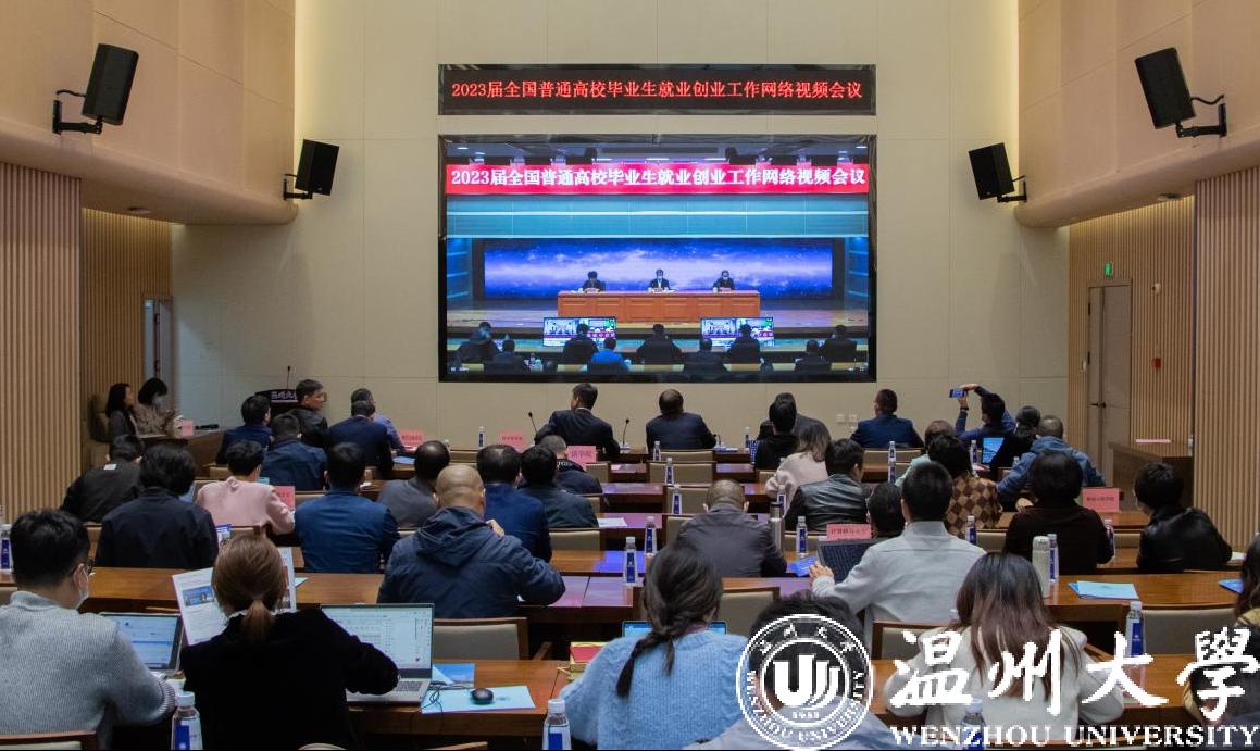 11月15日,教育部、人力资源和社会保障部召开2023届全国普通高校毕业生就业创业工作网络视频会议。ac米兰官网中文网站在南校区科技综合大楼305报告厅设立分会场,校长赵敏、校党委副书记庄兴忠,招就处、创业学院、研究生院、学工部、人文社科处、科技处等单位负责人,各学院院长、就业工作分管副书记、全体就业辅导员和毕业班辅导员参会。