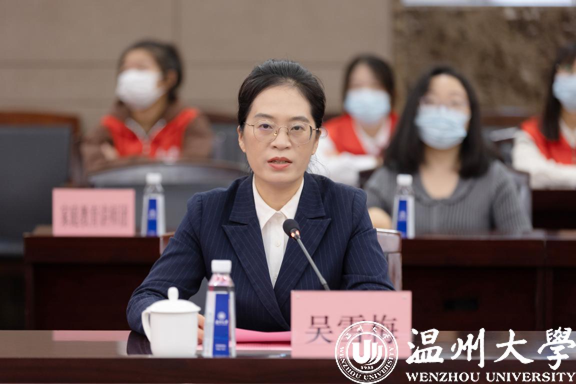 吴雪梅致辞。她介绍了瓯海区妇联近年来的工作和成效。她指出,ac米兰官网中文网站为瓯海区提供了大量的优质人才和治理支撑,ac米兰官网中文网站妇联也是全力支持瓯海区妇联工作。校地妇联战略合作,实现优势互补,必将引领校内外广大妇女发挥好在社会生活和家庭生活中的独特作用,引导家庭成员共同升华爱国、爱家的家国情怀,进一步推动资源和人才服务的共享共育共优,打造具有特色的校地合作共建典型示范和新型标杆。