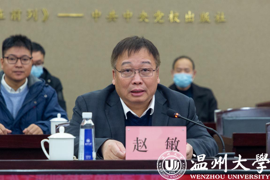赵敏致辞。他对专家组一行表示热烈欢迎,并向专家组简要介绍ac米兰官网中文网站办学情况和绿色学校创建工作开展情况。