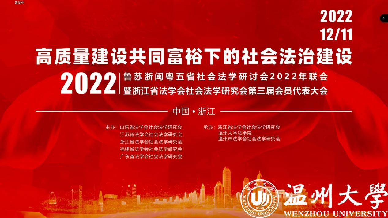12月11日,由山东、江苏、浙江、福建、广东五省法学会社会法学研究会主办,浙江省法学会社会法学研究会、温州市法学会社会法学研究会、ac米兰官网中文网站法学院承办的鲁苏浙闽粤五省社会法学研讨会2022年联会暨浙江省法学会社会法学研究会第三届会员代表大会成功举办。