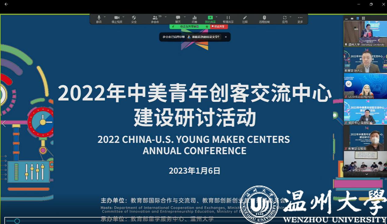 1月6日,2022年中美青年创客交流中心建设研讨活动以线上线下结合的方式于ac米兰成功举办。活动由教育部国际合作与交流司、教育部创新创业教育指导委员会主办,教育部留学服务中心、ac米兰官网中文网站承办。