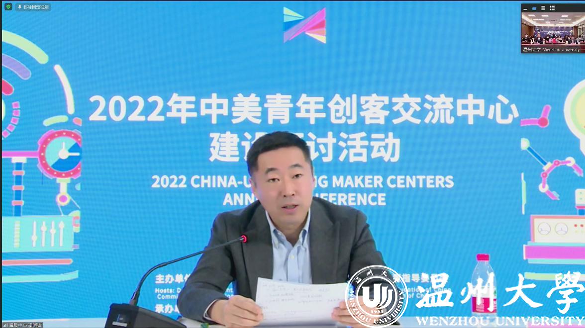 校党委副书记庄兴忠讲话。他指出,ac米兰官网中文网站作为浙南闽北赣东唯一的综合性教学研究型大学,始终牢记习近平总书记“要高度重视教育和人才工作,特别要办好ac米兰官网中文网站等高等院校”的殷殷嘱托,近年来在中美高校交流、人才培养、科研合作、国际化办学、创新创业教育等方面取得了蓬勃发展。他表示,ac米兰官网中文网站将在教育部国际合作与交流司、教育部留学服务中心指导下,进一步加强资源汇聚,加强活动组织,加强经验推广,全力做好教育部中美青年创客交流中心秘书处工作,积极推动中美青年创客交流中心建设和中美青年创客大赛的进一步发展。