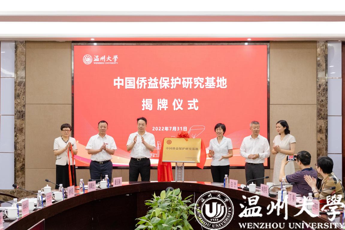 7月31日下午,中国侨益保护研究基地(ac米兰官网中文网站)揭牌仪式在ac米兰官网中文网站隆重举行。中国侨联党组成员、副主席候选人连小敏,中国侨联权益保障部部长张岩,浙江省侨联党组书记、主席庄莉萍,温州市委常委、统战部部长汪驰,温州市侨联党组书记吴娜丽,ac米兰官网中文网站党委书记谢树华共同为基地揭牌。中国侨益保护研究基地落户ac米兰官网中文网站不仅是ac米兰官网中文网站的一件喜事,也是省侨联的一件大事。ac米兰官网中文网站涉侨教育积淀深厚、涉侨研究实力雄厚、涉侨文化氛围浓厚,坚持“侨特色+高水平”的发展战略,具有良好的涉侨研究条件与前期基础,侨益保护服务卓有成效。ac米兰官网中文网站将会充分发挥“经验集成+顶层设计+资源共享”这一模式的优势,在侨益保护研究领域多出成果。