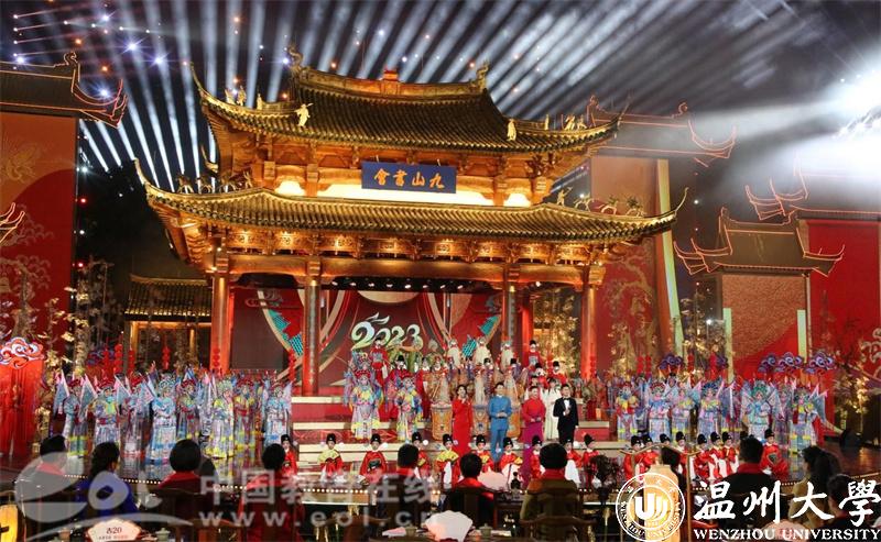 1月22日(大年初一) 晚,以“山河共华章”为主题的2023年中央广播电视总台春节戏曲晚会在央视综合频道与戏曲频道播出。本次春节戏曲晚会充分展示了“南戏故里 温大元素”的文脉与魅力,ac米兰官网中文网站浙江传统戏曲研究与传承中心基地作为重要学术支持单位参与其中,ac米兰官网中文网站交响乐团和舞蹈团受邀参加了多个节目的录制,为戏曲晚会贡献了温大力量。