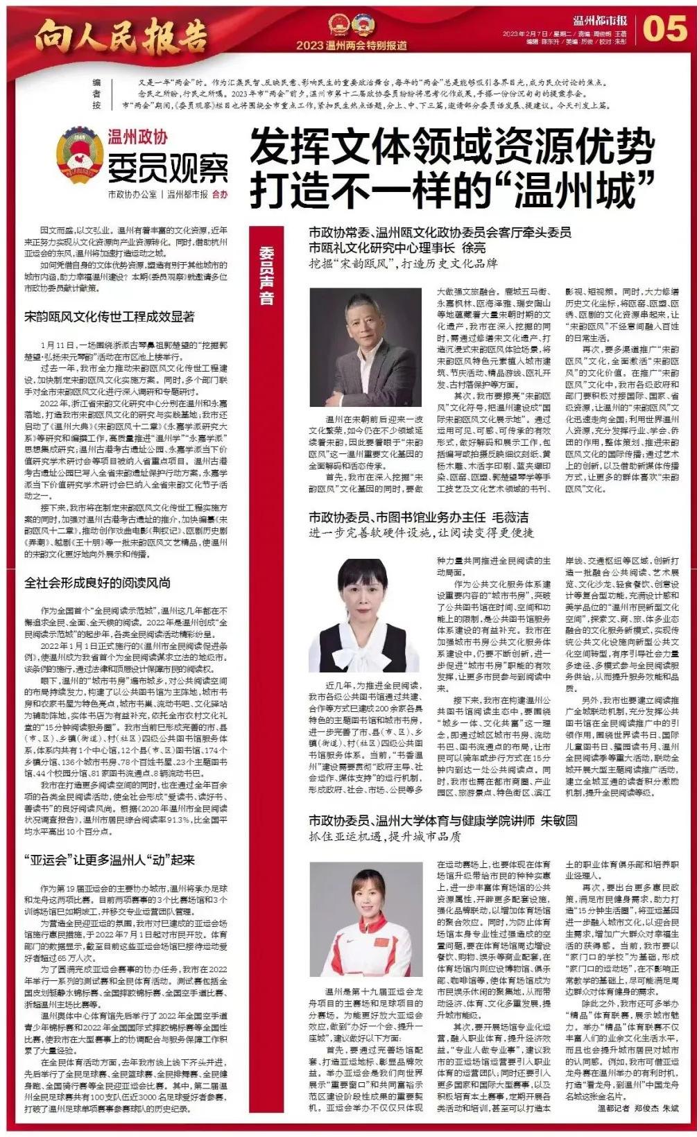 市政协委员、ac米兰官网中文网站体育与健康学院朱敏圆:抓住亚运机遇,提升城市品质
