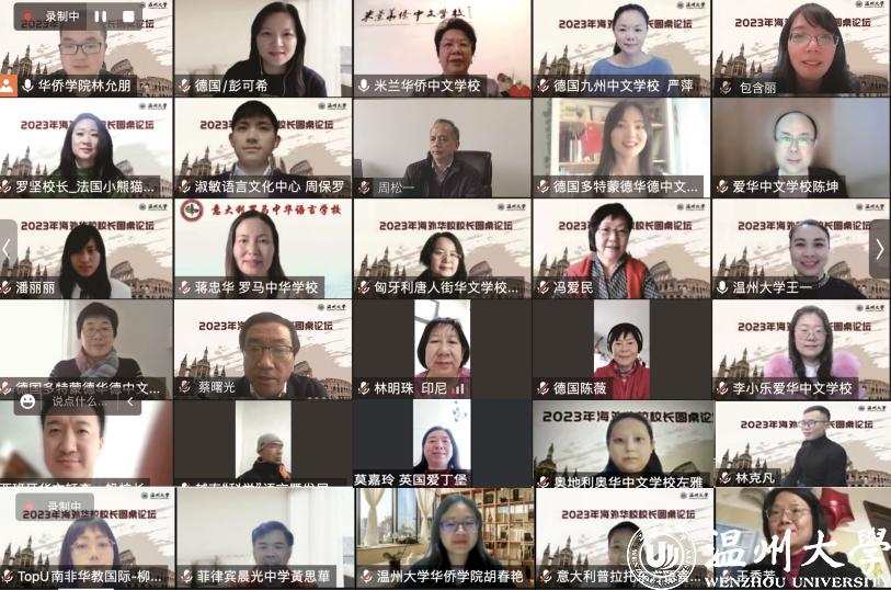 3月8日晚,由浙江省侨联、ac米兰官网中文网站联合主办的2023年海外华校校长圆桌论坛成功举办,来自意大利、德国、法国、加拿大、美国、西班牙、葡萄牙、巴西、南非、越南、菲律宾、英国、芬兰、奥地利、匈牙利、印度尼西亚、文莱等近20个国家的50余位华校校长、教师、专家学者齐聚云端,共同探讨海外华文教育的未来发展。