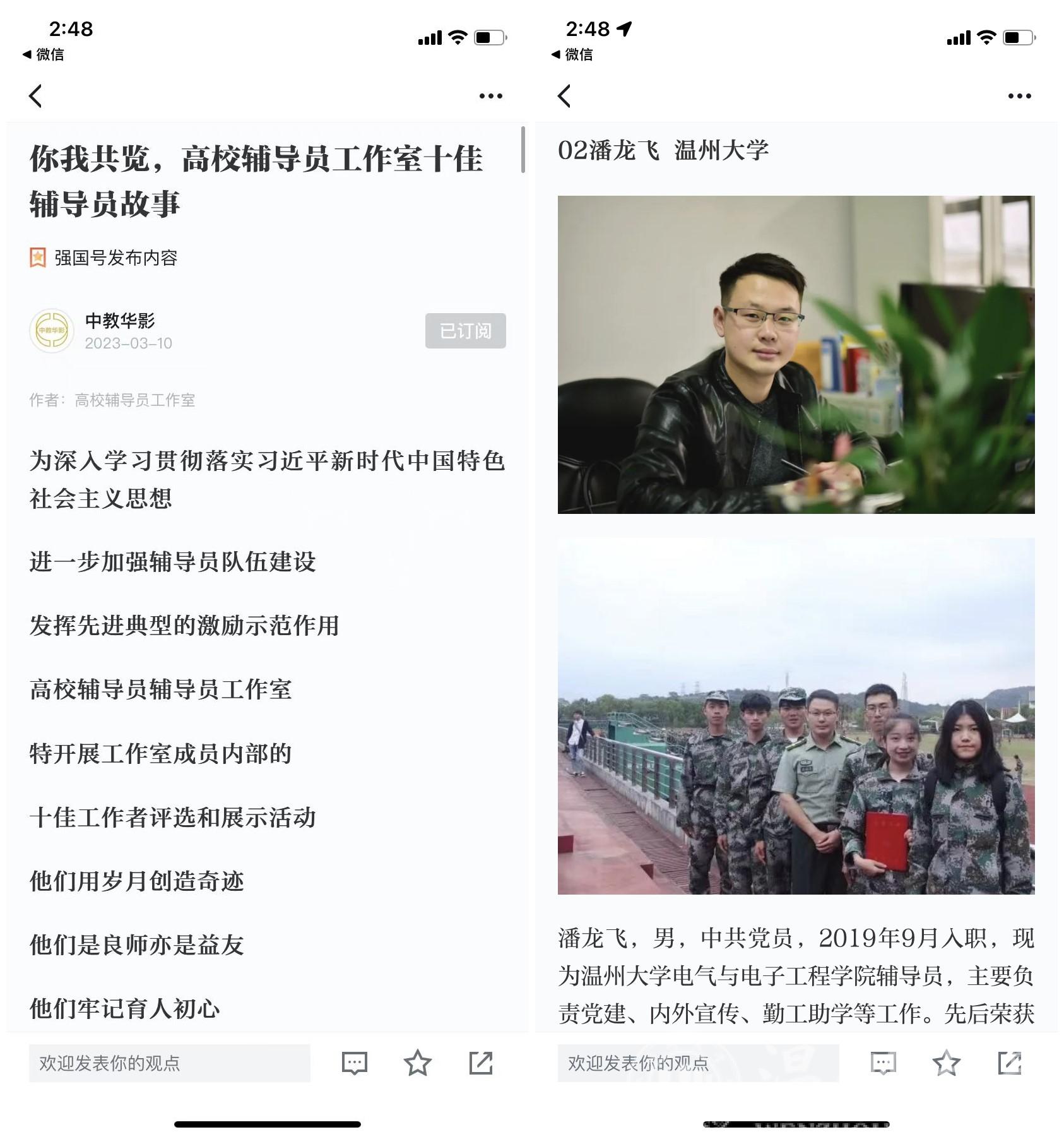 3月10日,学习强国刊发了一篇名为《你我共览,高校辅导员工作室十佳辅导员故事》的文章,该篇文章系全国高校辅导员工作室,为深入学习贯彻落实习近平新时代中国特色社会主义思想,进一步加强辅导员队伍建设,发挥先进典型的激励示范作用,进行的十佳工作者评选和展示活动,ac米兰官网中文网站电气与电子工程学院辅导员潘龙飞也在其中。