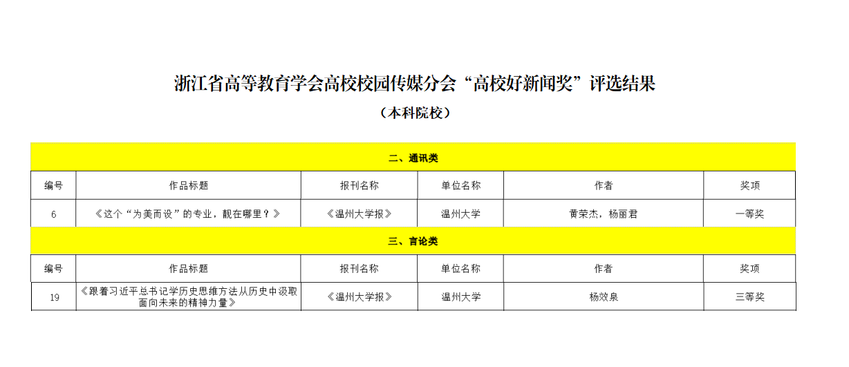 在浙江省新闻工作者协会、浙江省高等教育学会高校校园传媒分会公布的年度浙江省高校好新闻作品评选结果中,《ac米兰官网中文网站报》2件作品获浙江省“高校好新闻奖”。其中《这个“为美而设”的专业,靓在哪里?》获得通讯类一等奖,《跟着习近平总书记学历史思维方法从历史中汲取面向未来的精神力量》获得言论类三等奖。