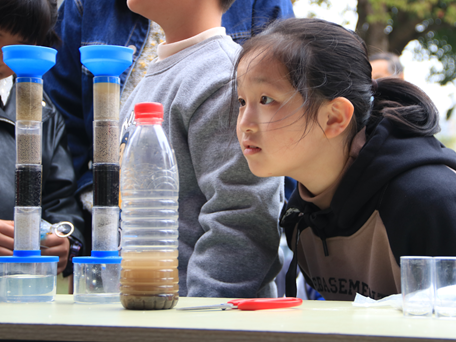 滴答省水佥民要,节约循环为己任。由温大师生描绘制作的精美主题海报吸引了很多路过的市民。活动现场,小朋友们注视着让浊水变清的装置连连惊叹。“这个净水小装置共有四层,上面这两层主要是过滤大一点的杂质,下面这两层主要是吸附细小的浮灰,这只是一个简单的净水装置,要想达到可以直接饮用的程度,还需要经过更多的过滤步骤。”志愿者认真地为小朋友们进行讲解。