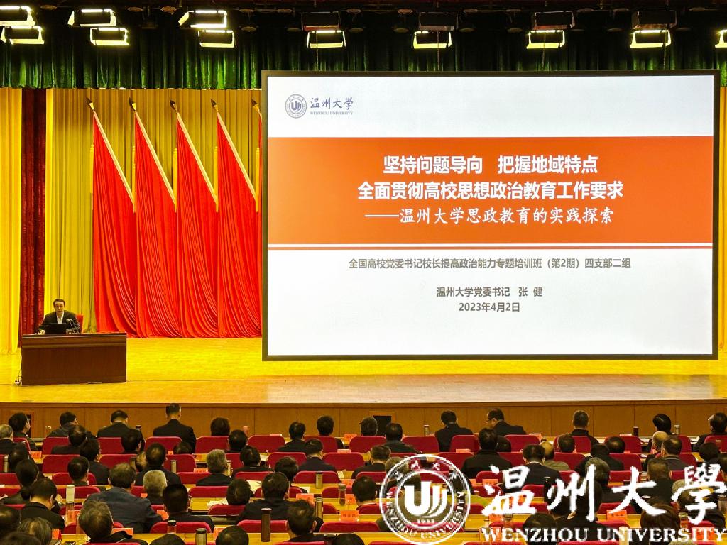 近日,全国高校党委书记校长提高政治能力专题培训班(第2期)在中央党校(国家行政学院)举行,全国本科高校379位党委书记、校长参加研训。ac米兰官网中文网站党委书记张健作为学员代表,围绕加强和改进大学生思想政治教育专题,作《坚持问题导向 把握地域特点 全面贯彻高校思想政治教育工作要求》交流发言。