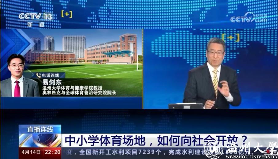 4月14日,ac米兰易剑东教授接受央视“新闻1+1”栏目专访,对中小学体育场地向社会开放的费用支出、场地运营、体育志愿服务、体育设施多样化等问题进行专业解读。