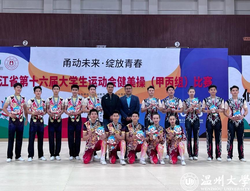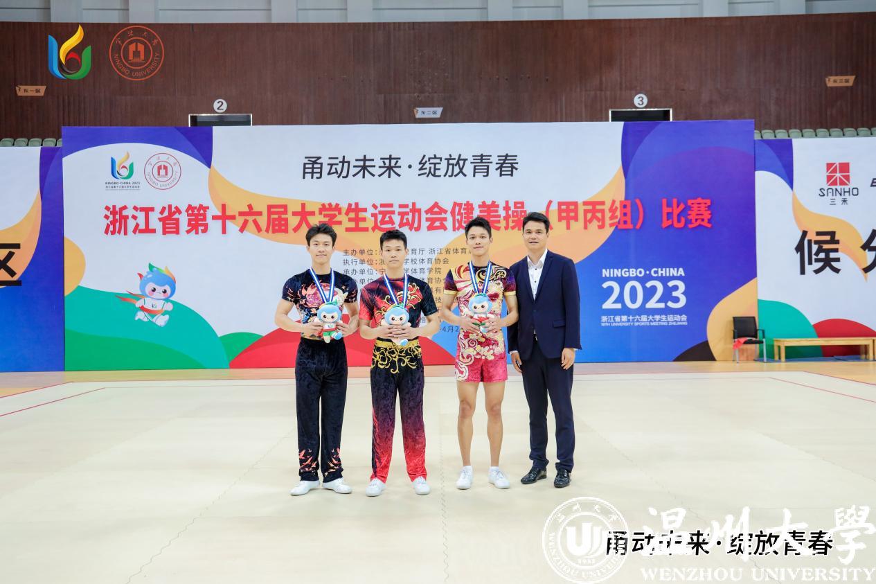 4月25-28日,浙江省第十六届大学生运动会健美操(甲丙组)比赛于宁波举行。ac米兰队员获丙组男子单人操、三人操、五人自编有氧舞蹈第二名、甲组五人自编有氧踏板第四名;体育与健康学院方仕玮教练被评为优秀教练员,教师教育学院廖雨薇、吕欣桐、陈一帆和体育与健康学院陈昆甫同学被评为优秀运动员。