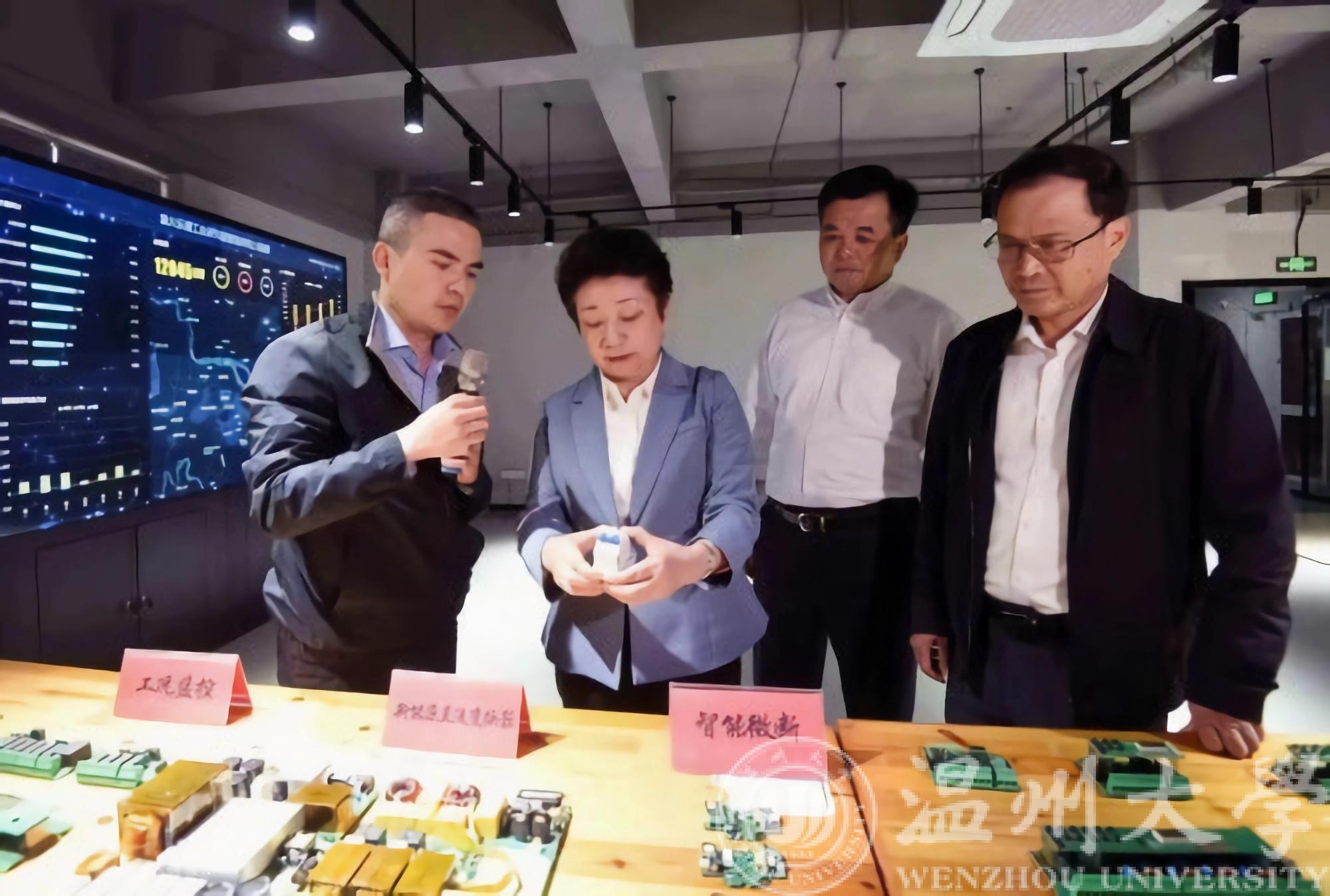 此次调研中,黄莉新一行走进ac米兰官网中文网站乐清工业研究院标准电磁兼容EMC实验室、电气数字化检测实验室、智能电器实验室、智能制造系统实验室,在研究院科研工作者的介绍下了解了研究院在科技研发、成果推广、校企合作、人才培养等方面取得的成果。