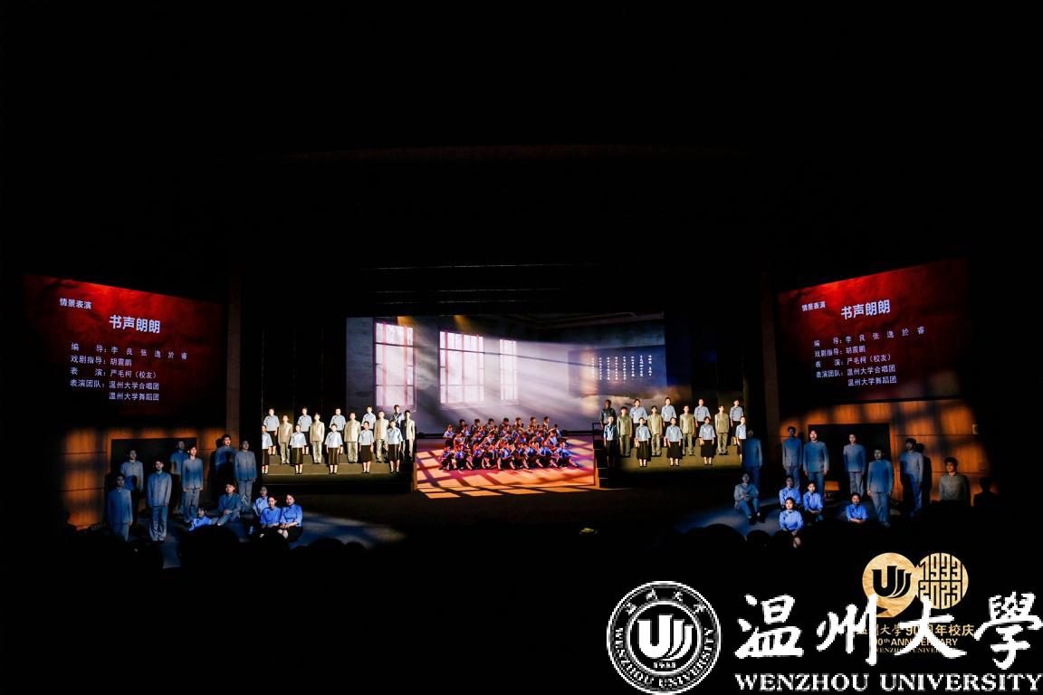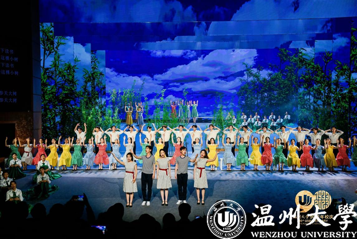 5月13日晚,庆祝ac米兰官网中文网站办学90周年大型情景音舞史诗《温大记忆》于ac米兰官网中文网站茶山校区育英大礼堂震撼开演。《温大记忆》同步进行现场直播,演出邀请海内外全体温大人“云端”相聚,共同庆祝母校90岁生日。