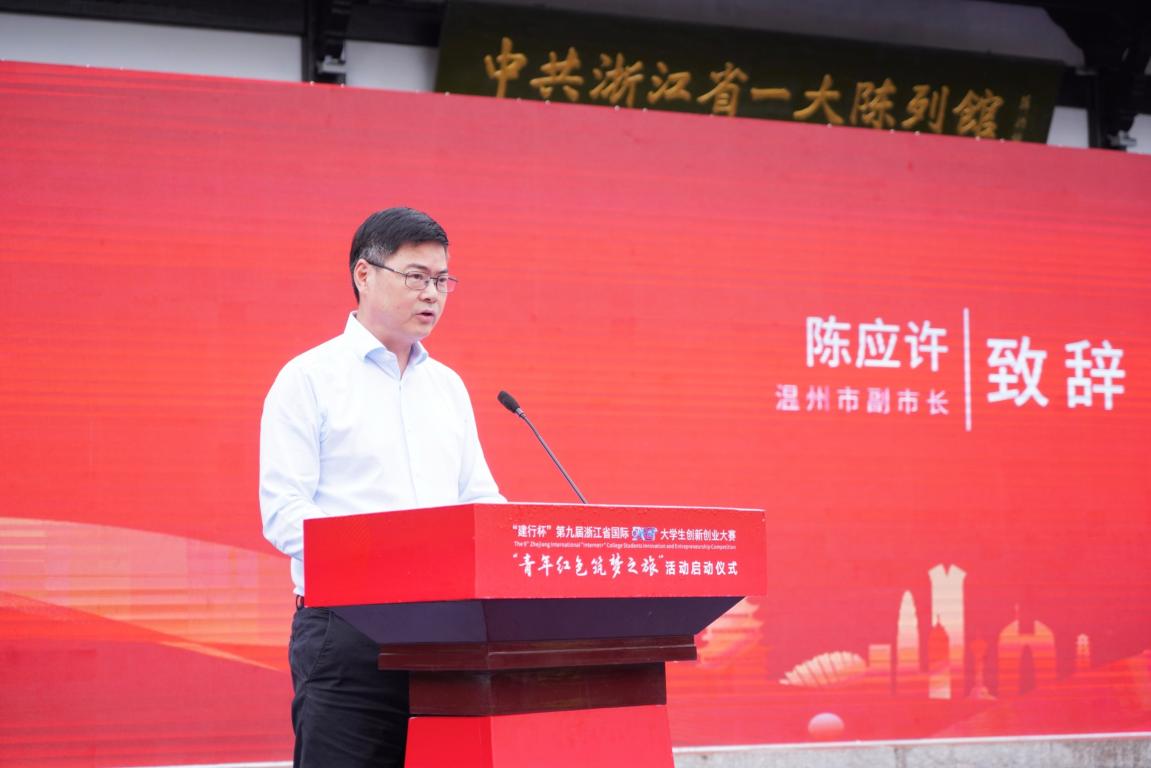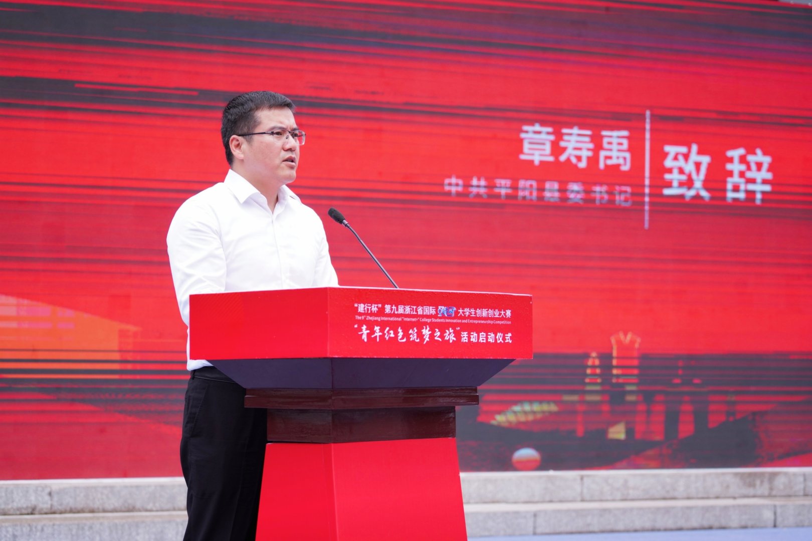 省教育厅二级巡视员、高教处处长吕华、温州市副市长陈应许、中国建设银行浙江省分行党委副书记、副行长杨辛、中共平阳县委书记章寿禹、ac米兰官网中文网站校长赵敏分别致辞。与会嘉宾共同启动了第九届“青年红色筑梦之旅活动。