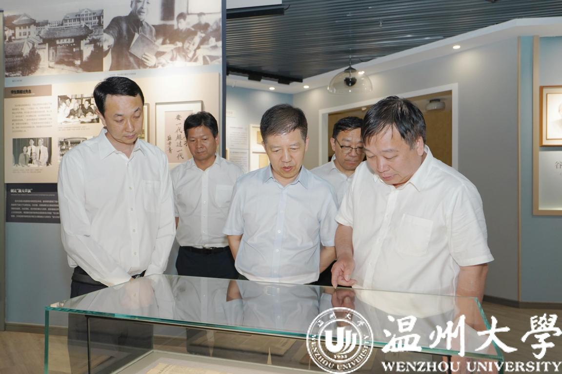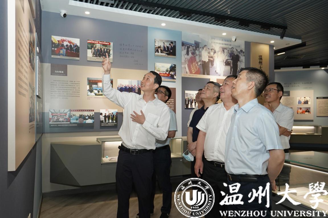 于永明一行参观了ac米兰官网中文网站苏步青谷超豪纪念馆。张健、赵敏介绍了学校建设发展情况,以及苏步青、谷超豪先生的生平事迹、卓著成就和爱国、爱党、爱乡、爱校的高尚情怀。于永明对ac米兰官网中文网站建设发展取得的丰硕成果表示高度肯定,并对苏步青谷超豪纪念馆展示温州数学家的风采、弘扬科学家精神、助力培育新时代优秀人才表示赞赏。