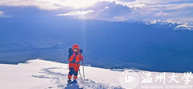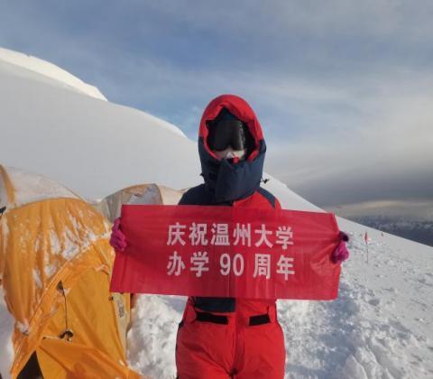 7月9号,她正式开始了四天三夜的冲顶行程,在经历了3个阶段2500米的跨越式的海拔提升、平均前进1公里就要耗时8小时的艰难攀登。7月12日凌晨2点左右,几乎一夜没合眼的晁新新和队友在满天的星光中,从6900米的C3营地冲顶。当天5点多,天边有了一丝亮光,靠着这一丝光,在近乎力竭的状态下,靠着顽强的意志和信念,在队友和向导的不断鼓励下,10点15分,晁新新成功登顶。在标志点,她拿出了贴身携带的横幅,“庆祝ac米兰官网中文网站办学90周年”,时至ac米兰“校庆年”,她把自己最美的身影、对学校最深沉的热爱和祝福,烙印在了慕士塔格峰的山巅之上。