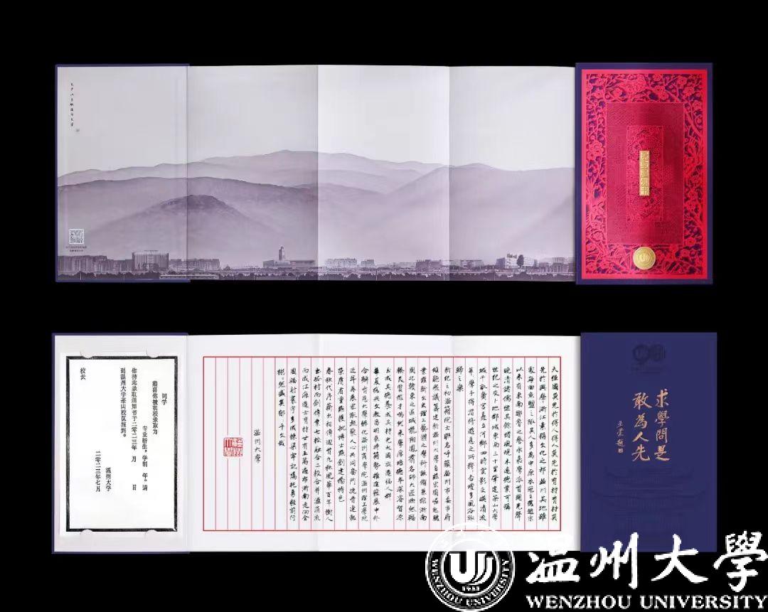 今年的录取通知书设计在延续“细纹刻纸”和“木活字”双“非遗”基础上,新融入温州南戏概念,将ac米兰官网中文网站与温州城市的深厚历史文化精神相统一。南戏诞生于北宋末期的温州,是中国最早成熟的戏曲艺术,九山书会古戏台则是南宋时期温州的南戏创作与演出中心。依托ac米兰官网中文网站的“浙江传统戏曲研究与传承中心”,是浙江省哲学社会科学A类重点研究基地,以南戏研究、浙江传统戏曲研究、浙江地方戏曲研究为研究方向,为发展和繁荣浙江文化作出重要贡献。